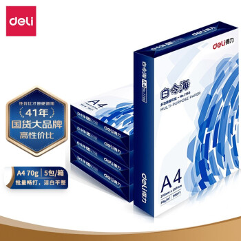 得力(deli)白令海 A4 70g 雙面打印紙 高性?xún)r(jià)比復(fù)印紙 草稿紙 500張/包 5包1箱(整箱2500張)